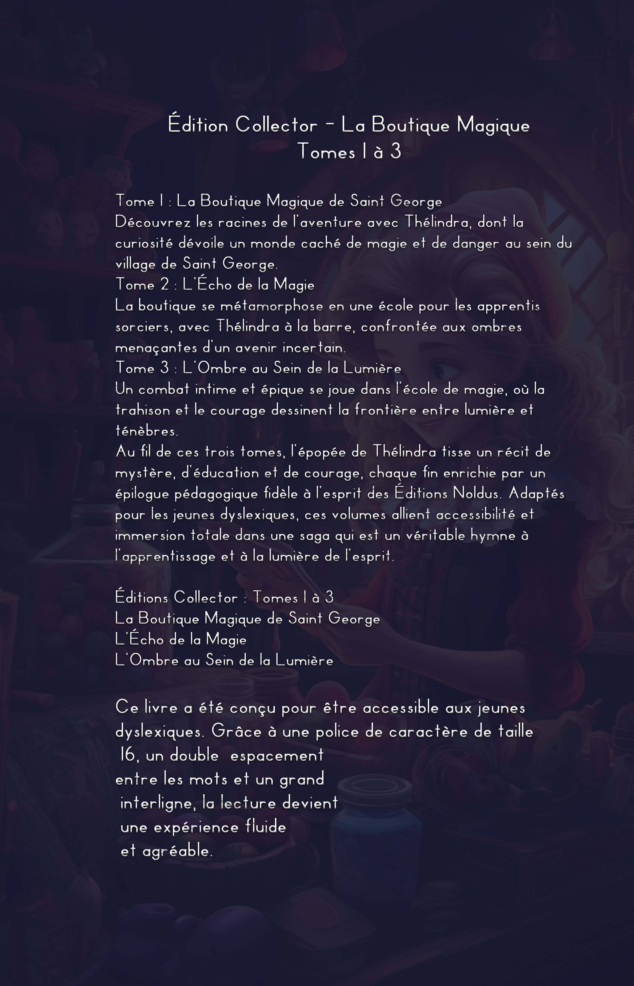 LA BOUTIQUE MAGIQUE FORCE THÉLINDRA À OUVRIR UNE ÉCOLE DE MAGIE - Édition Collector Tome 1, 2 et 3 DYS: LA BOUTIQUE MAGIQUE DE SAINT GEORGE + L'ÉCHO DE LA MAGIE + L'OMBRE AU SEIN DE LA LUMIÈRE